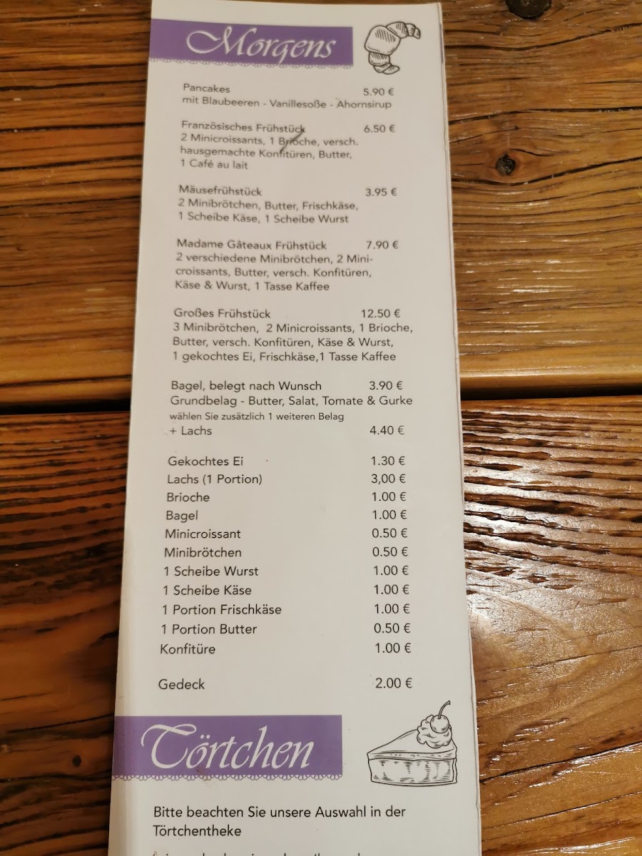 Madame Gateaux Menu